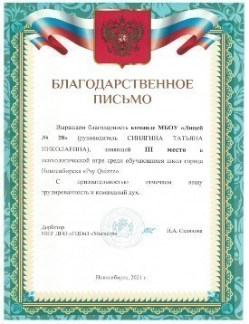 Итоги городской психологической игры среди обучающихся школ города Новосибирска «Psy Quizzz»