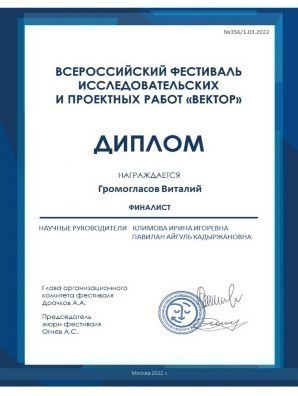 Дипломанты: ученики 10 Б класса Валяев Максим, Таскаев Павел. Наставник Москвин В.Б.